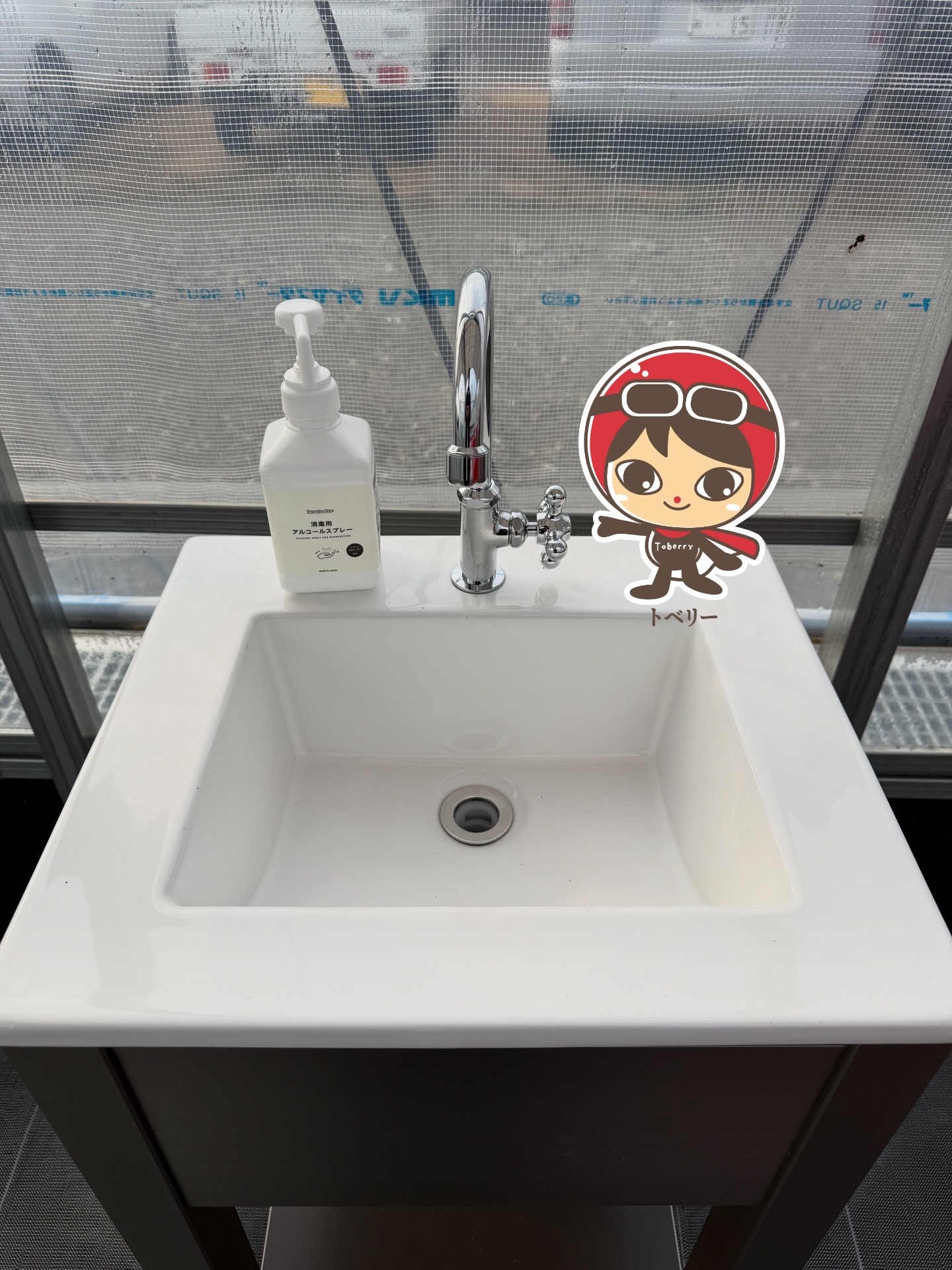 手洗い、いちご洗い場