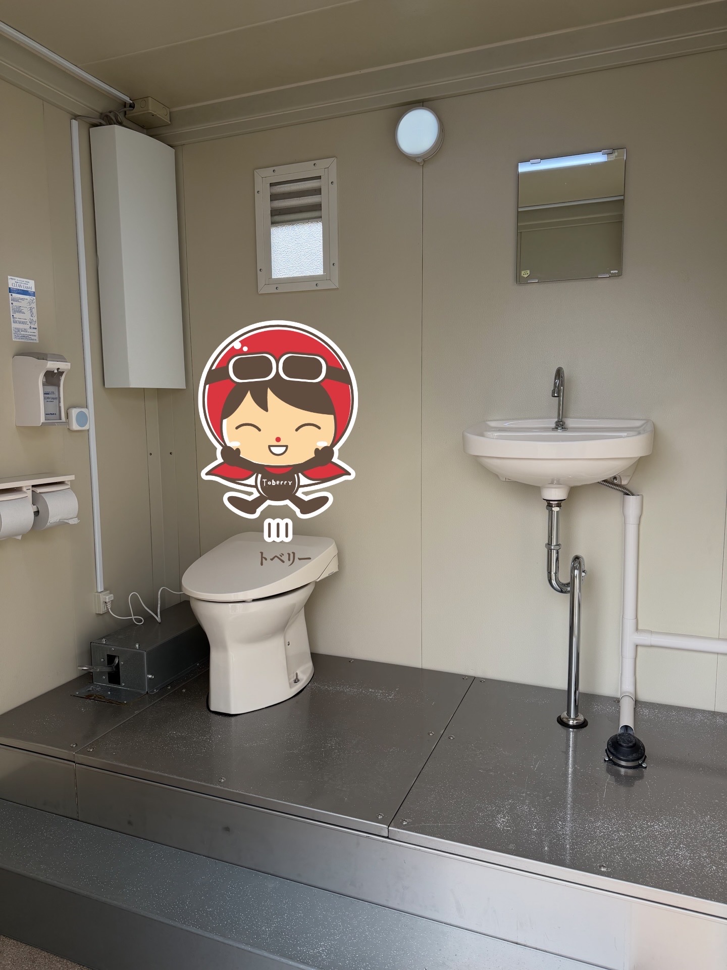 広めの簡易水洗トイレ(温便座、音姫、便座クリーナー)